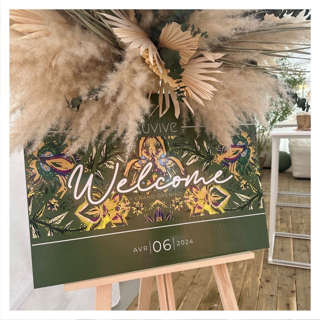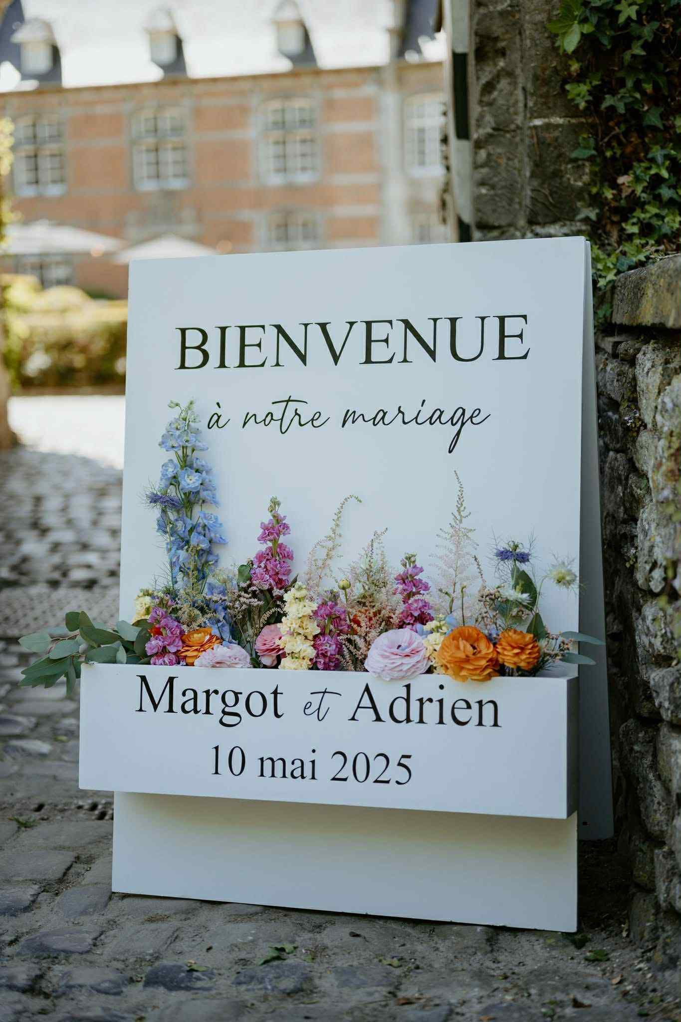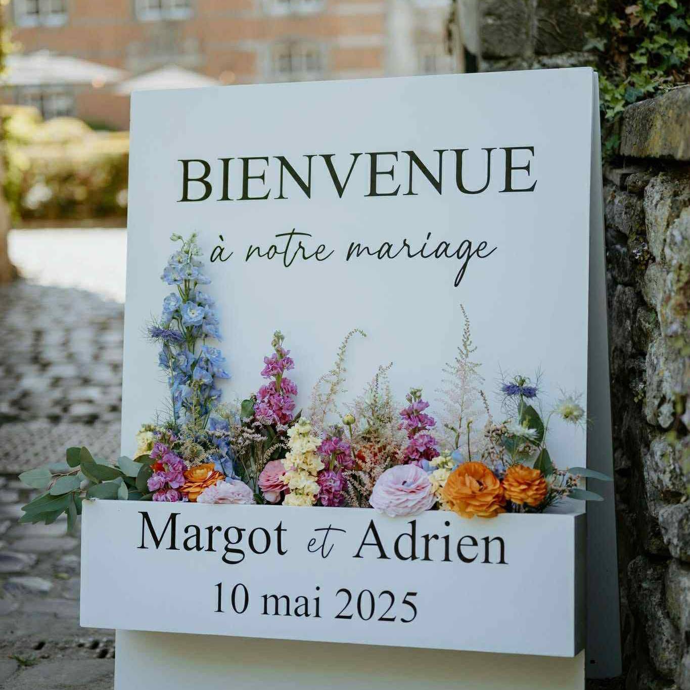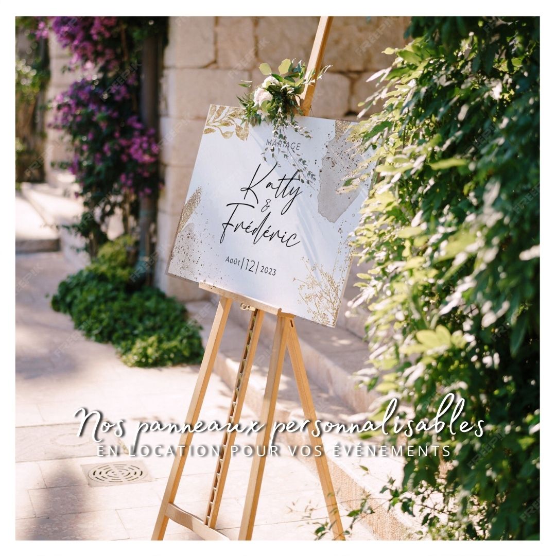 Envie d’un accueil original pour votre mariage ou votre événement ? Découvrez notre panneau de bienvenue personnalisé avec bac à fleurs intégré.